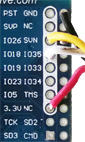 | The connection to the micro:bit is made via pins 3v3 19(SCL), P20(SDA) and GND. Several breakout boards and connecter devices are available, such as Pimoroni's pin:bit, Didel's mbHub and Seed's Grove Shield. |